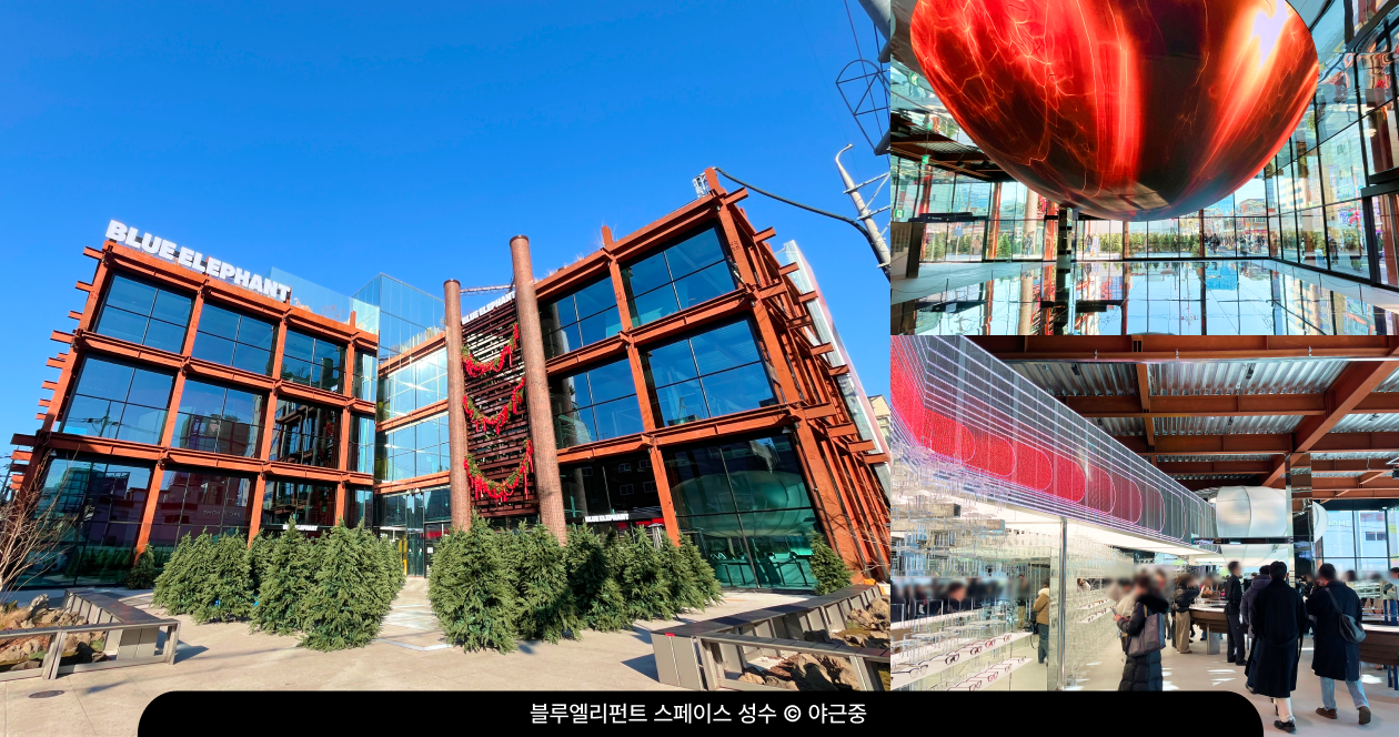 이미 글로벌 브랜드로 성장한 젠틀몬스터가 오프라인 공간을 통해 브랜드 이미지를 구축해온 것처럼, 블루엘리펀트 역시 그 흐름을 잇는 전략을 보였어요. 블루엘리펀트는 지난 11월 약 1,000평 규모의 메가 스토어 ‘블루엘리펀트 스페이스 성수’를 열었는데요. 압도적인 규모는 물론, 성수동에서도 손꼽히는 고가의 월세를 감수하고 자리를 잡았다는 점에서 브랜드의 강한 의지를 엿볼 수 있었죠.
