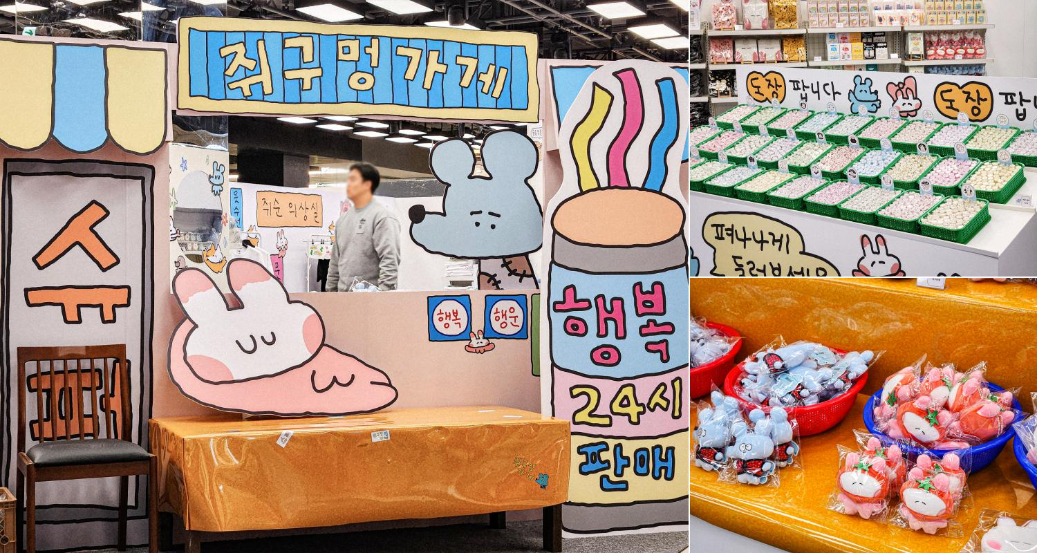 더현대 서울에서 열린 인스타툰 ‘수키도키 짱쥐순'의 팝업스토어는 판매를 중점으로 진행된 행사였는데요. 총 50여 가지의 굿즈를 준비하며 키링, 인형, 가방, 의류 등 다양한 상품군을 선보였고 팝업스토어 내부는 포토존 대신 판매 매대를 중심으로 구성해 고객의 구매 경험에 집중했습니다.