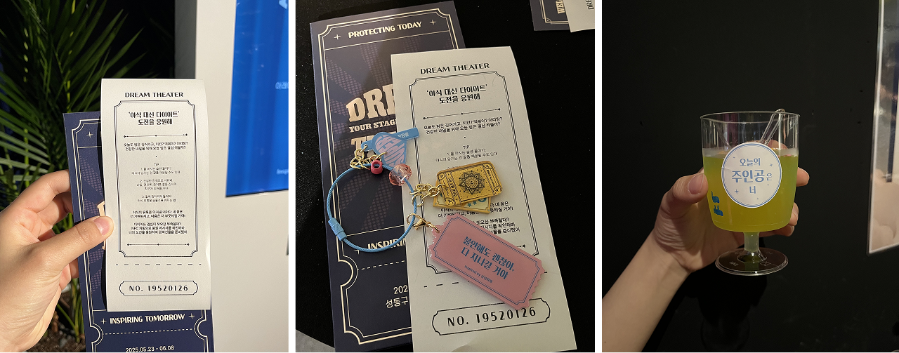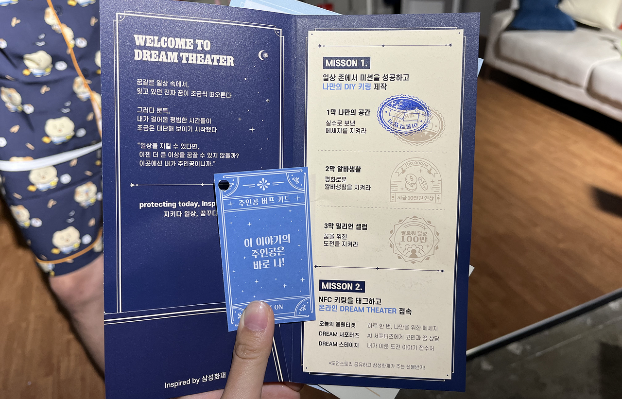 드림시어터는 삼성화재의 아이덴티티 메시지인 ‘지키다 일상, 꿈꾸다 그 이상'을 테마로한 연극형 팝업스토어로, 관객이 직접 연극의 주인공이 되어, 일상에서 겪는 소소한 위기부터 미래의 도전까지 체험할 수 있도록 구성했다고 합니다.
