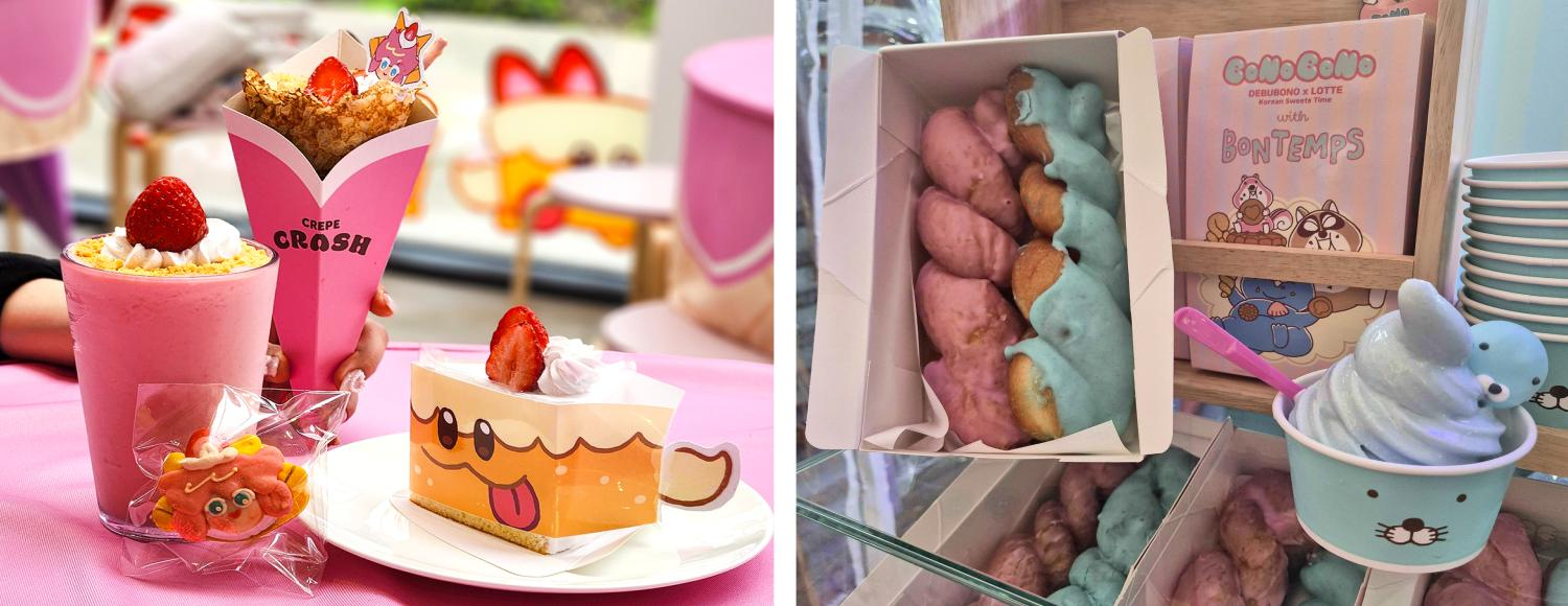 팝업스토어 형태가 다양해짐에 따라, 단일 콘텐츠로 공간을 채우기보다는 신규 굿즈를 선보이거나, 캐릭터와 함께 사진을 남길 수 있는 포토존, 세계관을 즐길 수 있는 이벤트 등 다양한 즐길 거리를 마련해 행사를 더욱 풍성하게 만들고 있는데요. 특히 F&B 브랜드와의 콜라보를 내세우는 사례들이 자주 보이고 있어요. 이는 직접 참여할 수 있는 체험뿐만 아니라 오감을 자극하는 콘텐츠를 통해 캐릭터를 더욱 깊이 각인시키는 전략이에요!