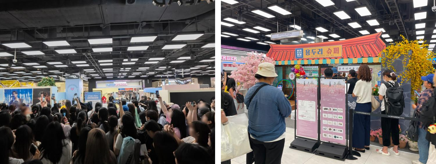 5월에 운영된 선재 업고 튀어 팝업스토어는 7일 내내 대기 인원 1,000팀을 넘길 정도로 뜨거운 반응을 얻었습니다. 반면, 6월에 진행된 눈물의 여왕 팝업스토어는 오픈 첫날 오후 기준으로 20분만 대기하면 입장이 가능할 정도로 여유롭게 진행되었죠.