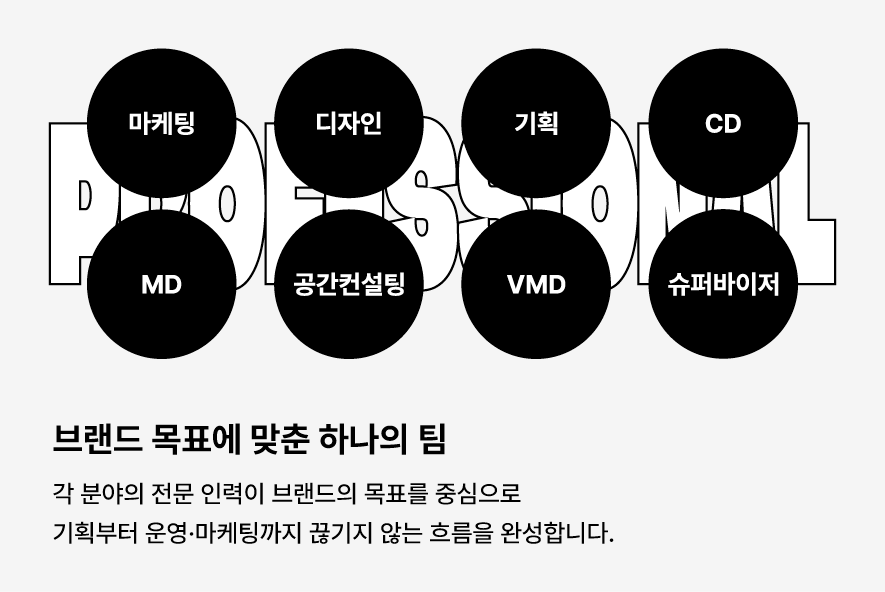 브랜드를 기준으로 고민하고 설계합니다.