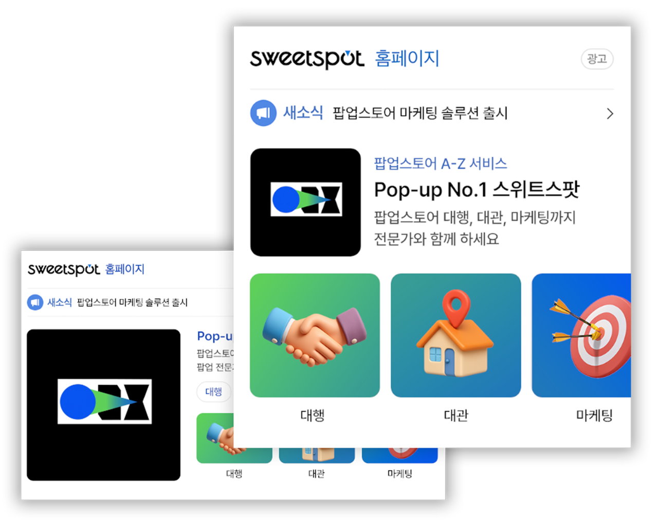 팝업 관련 정보&홍보 콘텐츠 솔루션을