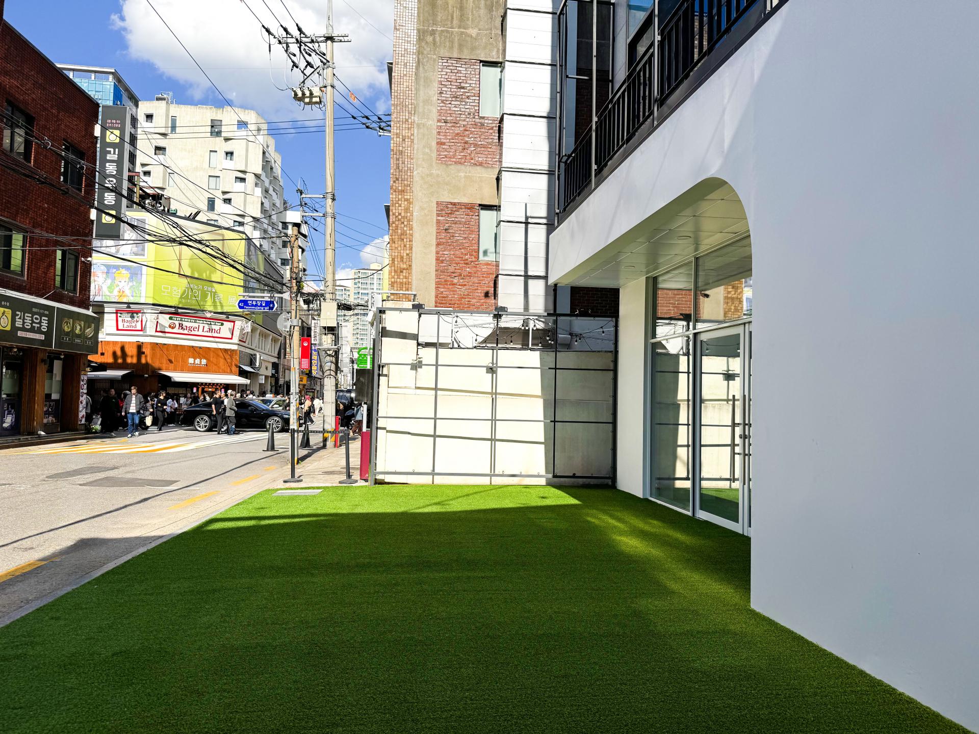 날씨가 따뜻해지는 시즌이 다가오면서 야외 공간이 있는 팝업 공간을 찾는 분들이 많으신데요. 스테이지 엑스 성수 52는 인조 잔디가 깔린 전용 앞마당을 보유하고 있어, 실내외 공간을 유기적으로 연계한 풍성한 콘텐츠 기획이 가능해요. 마당은 브랜드 니즈에 맞춰 팝업 기간 동안 웨이팅 존, 포토존, 혹은 샘플링 이벤트 구역으로 자유롭게 활용할 수 있습니다. 실제로 최근 뷰티 브랜드 '마녀공장'이 마당을 활용해 진행한 샘플링 프로모션은 연무장길을 지나는 잠재 고객들을 거리에서 즉각적으로 유입시키며 팝업 기간 내내 폭발적인 반응을 이끌어내, 야외 공간이 가진 강력한 집객력을 몸소 입증하기도 했답니다.